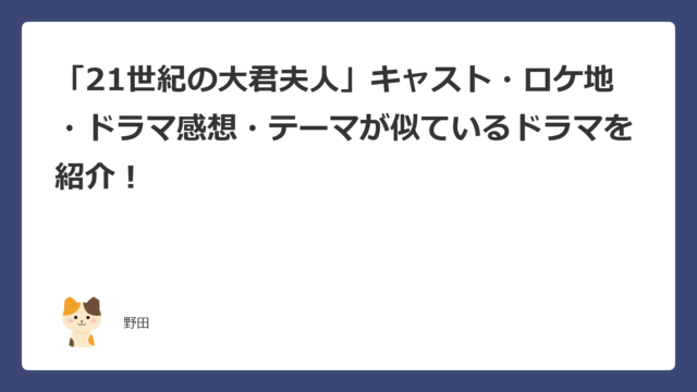 「21世紀の大君夫人」キャスト・ロケ地・ドラマ感想・テーマが似ているドラマを紹介!
