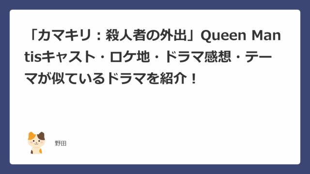 「カマキリ:殺人者の外出」Queen Mantisキャスト・ロケ地・ドラマ感想・テーマが似ているドラマを紹介!